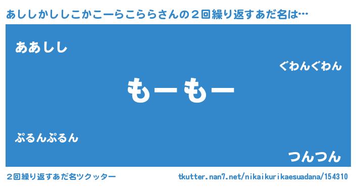 | 男性向けラノベタイトル風あだ名 | 『Re:あししかししこかこーらこららから始める異世界生活』 |