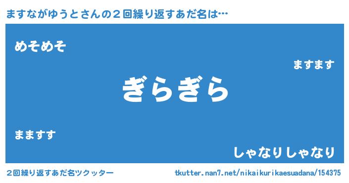 | ヘコむあだ名 | 『ますながゆうと(爆)』『ますにー』 |