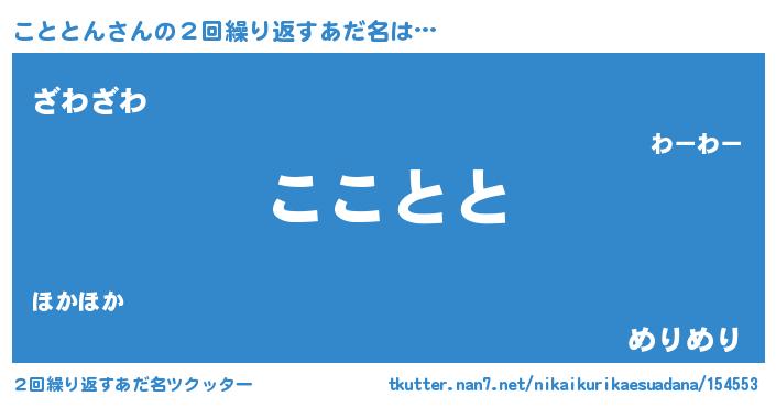 | 女子向けラノベタイトル風あだ名 | 『こととんの雑貨屋さん』『闇のこととん』 |
