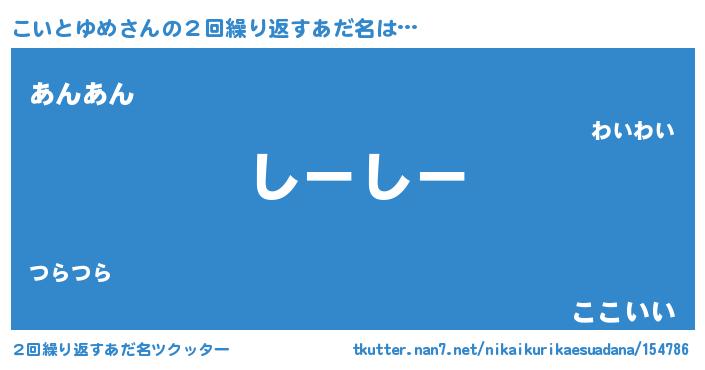 | 意味不明あだ名 | 『住所不定無職こいとゆめ(13歳)』 |