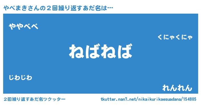 | 欧米人風あだ名 | 『ウサインやべまき』 |
