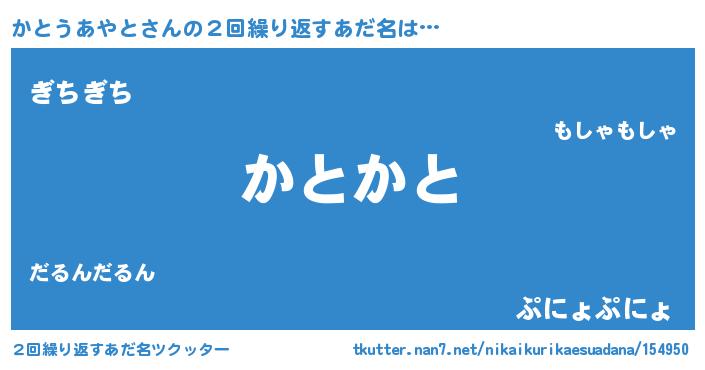 | ヘコむあだ名 | 『かとにゅー』『かとうあやと(笑)』 |