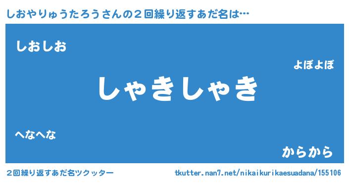 | 意味不明あだ名 | 『住所不定無職しおやりゅうたろう(98歳)』 |