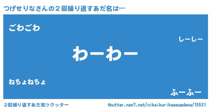 | 男性向けラノベタイトル風あだ名 | 『転生したらつげせりなだった件』 |