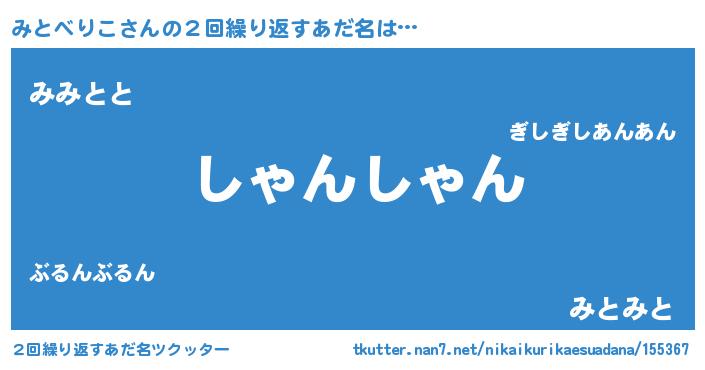 | 意味不明あだ名 | 『住所不定無職みとべりこ(13歳)』 |