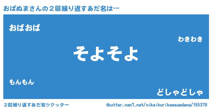 | 男性向けラノベタイトル風あだ名 | 『この素晴らしい世界におばぬまを!』 |