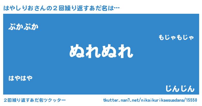 | 欧米人風あだ名 | 『ウサインはやしりお』 |