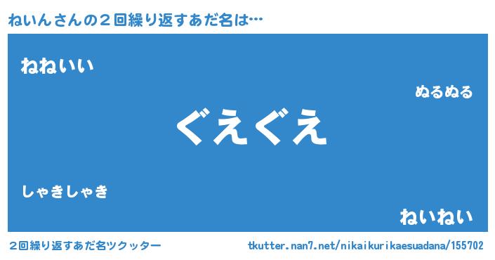 | ヘコむあだ名 | 『ねいん(笑)』『豆乳』『ねいにー』 |