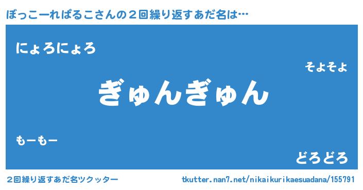 | 意味不明あだ名 | 『永久保存ぼっこーればるこ』 |