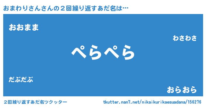| ピコ太郎風あだ名 | 『オオ太郎』『ピオ六郎』『オマ五郎』 |