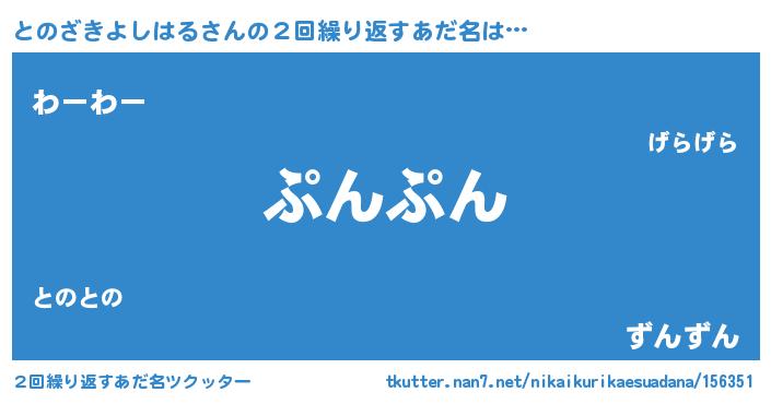 | ヘコむあだ名 | 『とのざきよしはる(震え声)』『とのふぇ~』 |