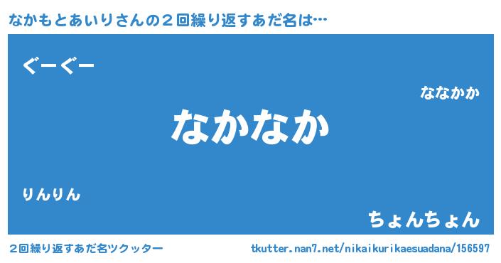 | 可愛いあだ名 | 『なんなん』『なかもとあいりママ』 |