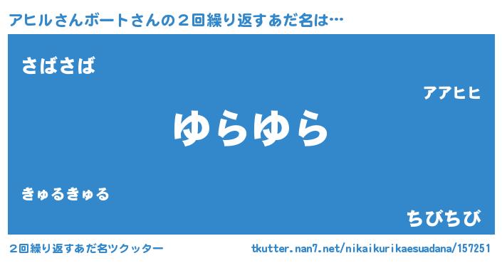 | 欧米人風あだ名 | 『トリンドルアヒルさんボート』 |