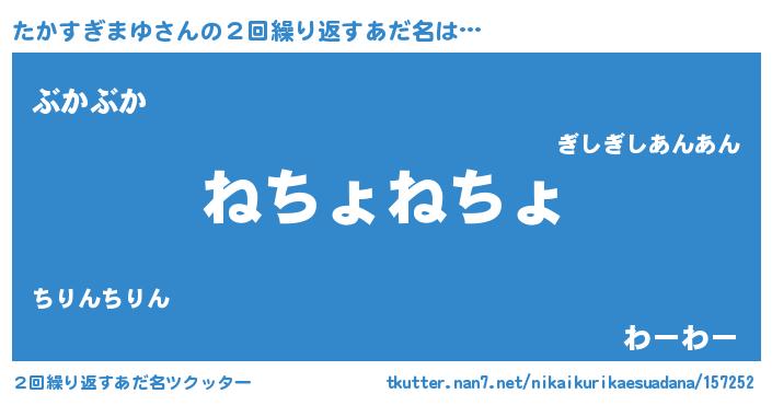 | 肩書あだ名 | 『たかすぎまゆリーダー』 |