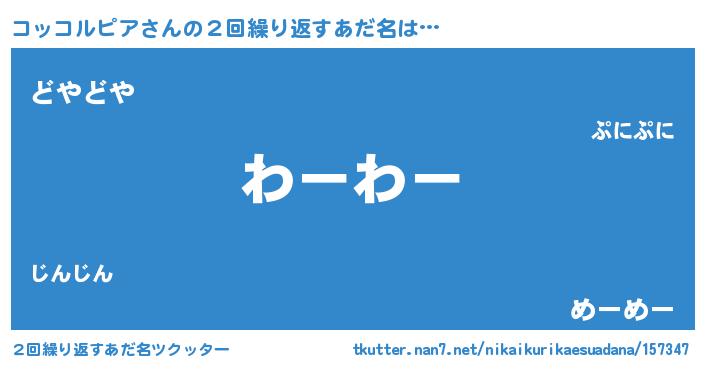 コッコルピアさんの2回繰り返すあだ名をツクッター!
