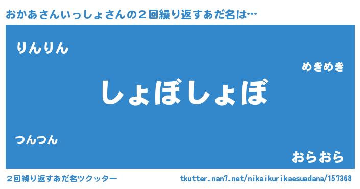 | 意味不明あだ名 | 『住所不定無職おかあさんいっしょ(39歳)』 |