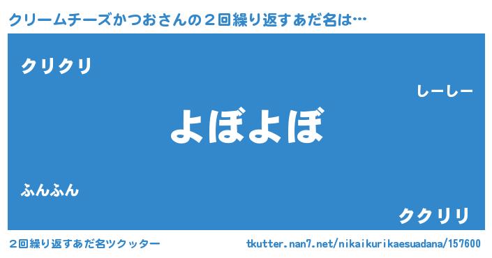 | 欧米人風あだ名 | 『トリンドルクリームチーズかつお』 |