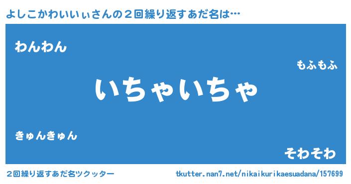 | 欧米人風あだ名 | 『ウサインよしこかわいいぃ』 |