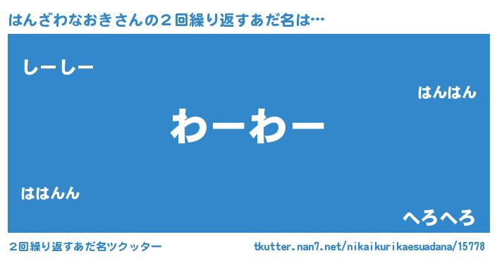 | 男性向けラノベタイトル風あだ名 | 『転生したらはんざわなおきだった件』 |