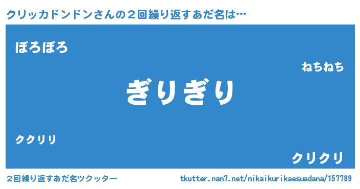 | ヘコむあだ名 | 『クリッカドンドン(震え声)』『クリにー』 |