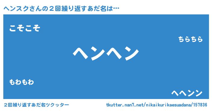 | ヘコむあだ名 | 『ヘンにー』『ヘンスク(小並感)』 |