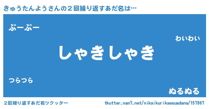 | 意味不明あだ名 | 『住所不定無職きゅうたんよう(1歳)』 |
