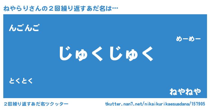 | 意味不明あだ名 | 『住所不定無職ねやらり(8歳)』 |