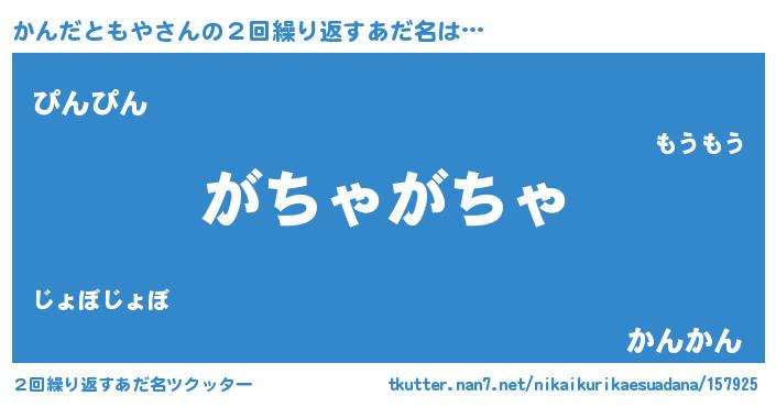 | ヘコむあだ名 | 『かんだともや(遠い目)』『かんもー』 |