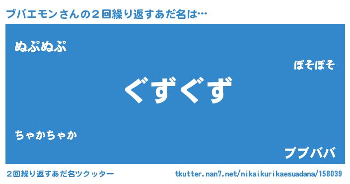 | ヘコむあだ名 | 『ブバエモン(小並感)』『ブバお』 |