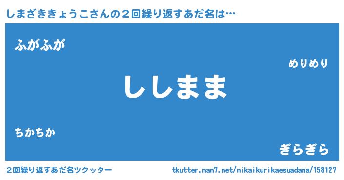 | 男性向けラノベタイトル風あだ名 | 『やはりしまざききょうこの青春ラブコメはまちがっている 』 |