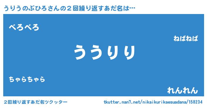 | 欧米人風あだ名 | 『うりうのぶひろクリステル』 |