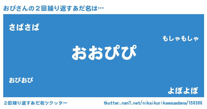| 女子向けラノベタイトル風あだ名 | 『おぴの雑貨屋さん』『闇のおぴ』 |