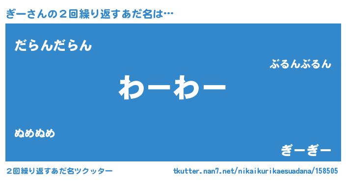 | 意味不明あだ名 | 『なめこ科ぎー属』『ペロリンぎー』 |