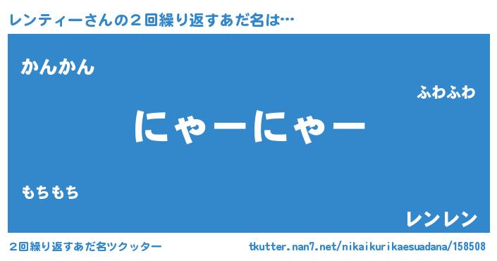 | 男性向けラノベタイトル風あだ名 | 『レンティーの嫁は女の子じゃないと思った?』 |
