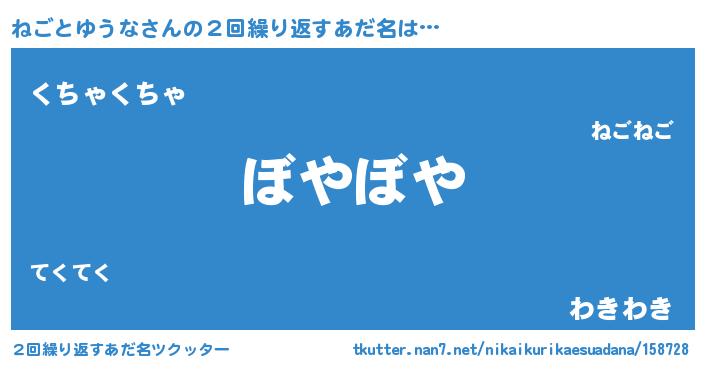 | ヘコむあだ名 | 『ねごとゆうな(苦笑)』『ねごにー』 |