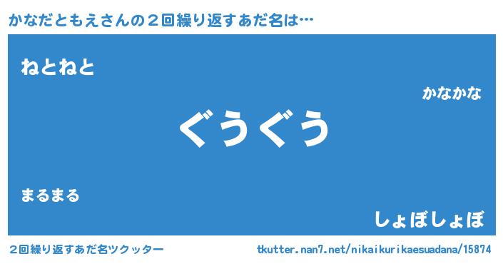 | ヘコむあだ名 | 『かなだともえ(苦笑)』『かな太郎』 |
