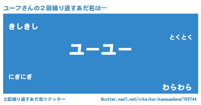 | 意味不明あだ名 | 『ペロリンユーフ』『永久保存ユーフ』 |
