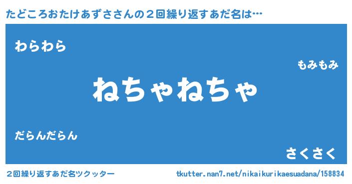 | 男性向けラノベタイトル風あだ名 | 『たどころおたけあずさの嫁は女の子じゃないと思った?』 |