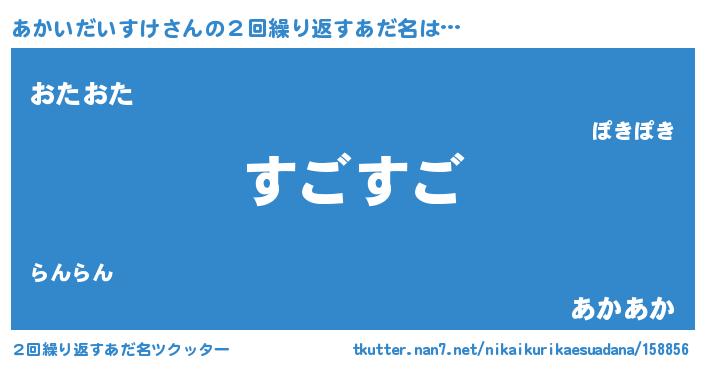 | 意味不明あだ名 | 『住所不定無職あかいだいすけ(53歳)』 |