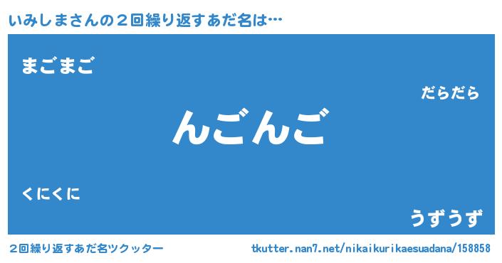 | ヘコむあだ名 | 『いみ太郎』『いみしま(笑)』『牛乳』 |