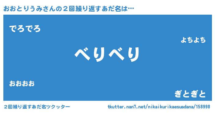 | ヘコむあだ名 | 『おおとりうみ(笑)』『なまこ酢』 |