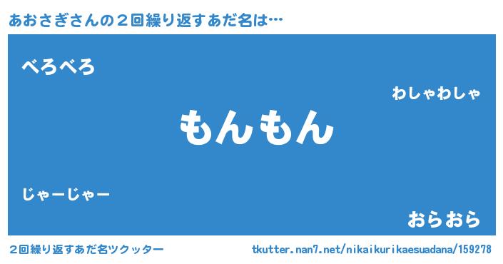 | 男性向けラノベタイトル風あだ名 | 『Re:あおさぎから始める異世界生活』 |