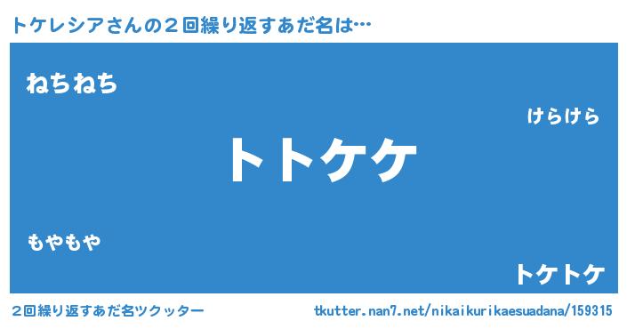 | 欧米人風あだ名 | 『トケレシアクリステル』 |