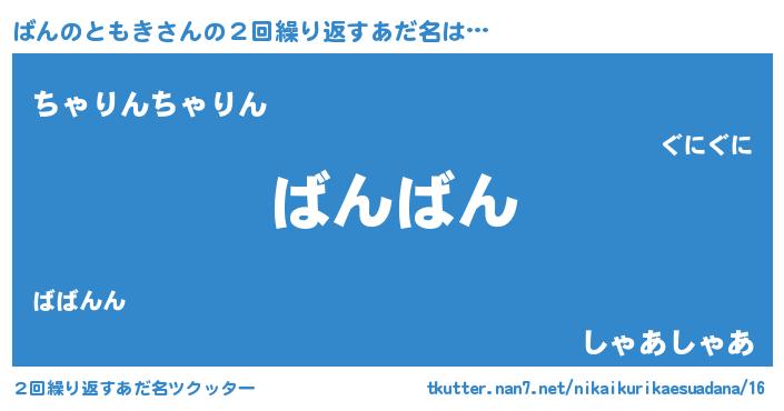 | ヘコむあだ名 | 『ばんにー』『ばんのともき(苦笑)』 |