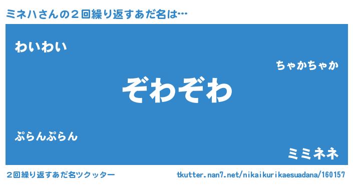 | 意味不明あだ名 | 『住所不定無職ミネハ(93歳)』『自称ミネハ』 |