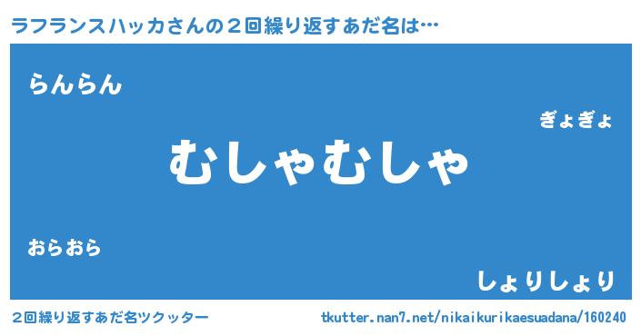 | ヘコむあだ名 | 『ラフランスハッカ(笑)』『ラフっぺ』 |