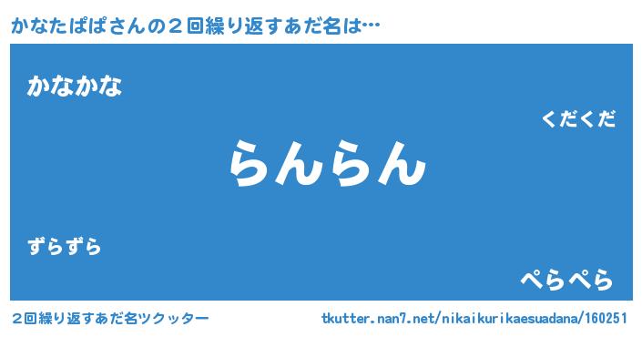 | 胡散臭い通販商品みたいなあだ名 | 『必ず成功するブレスレット…その名も「かなたぱぱ」』 |