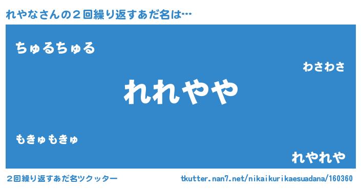 | 意味不明あだ名 | 『れやなフォーエバー』『ペロリンれやな』 |