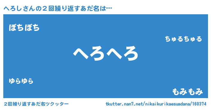| 意味不明あだ名 | 『ペロリンへろし』『自称へろし』 |