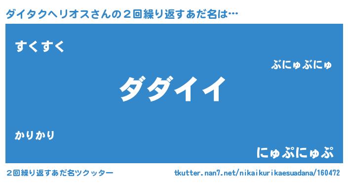 | ファンタジー風あだ名 | 『エターナルダイタクヘリオスー』 |